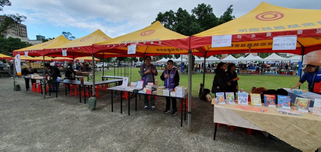 2025年12月6日(六),台灣聖經公會受邀參與文山區眾教會合辦的「文山有愛公益園遊會」,在伯大尼兒少家園對面公園設攤展售聖經。當日義賣所得全數捐贈主辦單位,用以支持文山區在地公益團體,盼以實際行動將上帝的愛傳遞給社區。