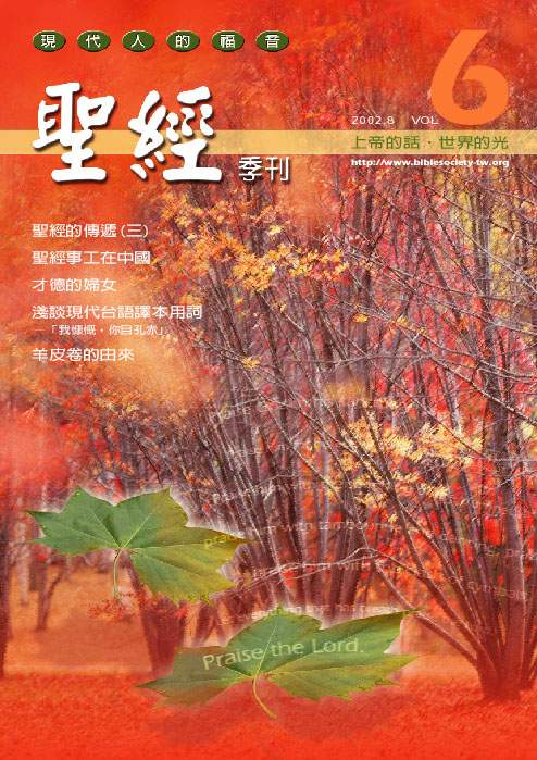 語言是文化演變的紀錄,常隨著時代變遷而演化。E世代的語言我們聽不懂,同樣地,寫在百年前的《台語巴克禮譯本》中的語句,生活在現代的我們也有讀不通的地方。於是在聖經公會,有這樣的一個翻譯小組,為《現代台語譯本》默默地耕耘,在這期的季刊中,就由翻譯工作者翁修恭牧師來〈淺談《現代台語譯本》用詞〉,看看一句「我慷慨,你目孔赤」是如何字字斟酌、仔細推敲而來。