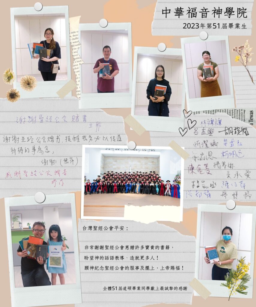 謝謝台灣聖經公會在畢業季的這個時期贈送聖經禮物