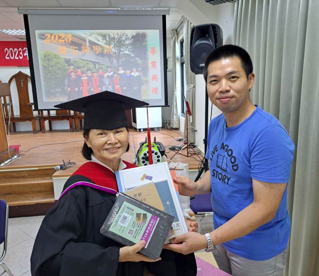 感謝台灣聖經公會贈送聖經和其他研經書籍來作為畢業禮物,祈願神讓這份美好的禮物轉化爲生命的動能,未來能成為眾人的祝福與幫助!願上帝記念聖經公會所有人的擺上,也保守聖經公會所推動的一切事工盡都順利亨通!