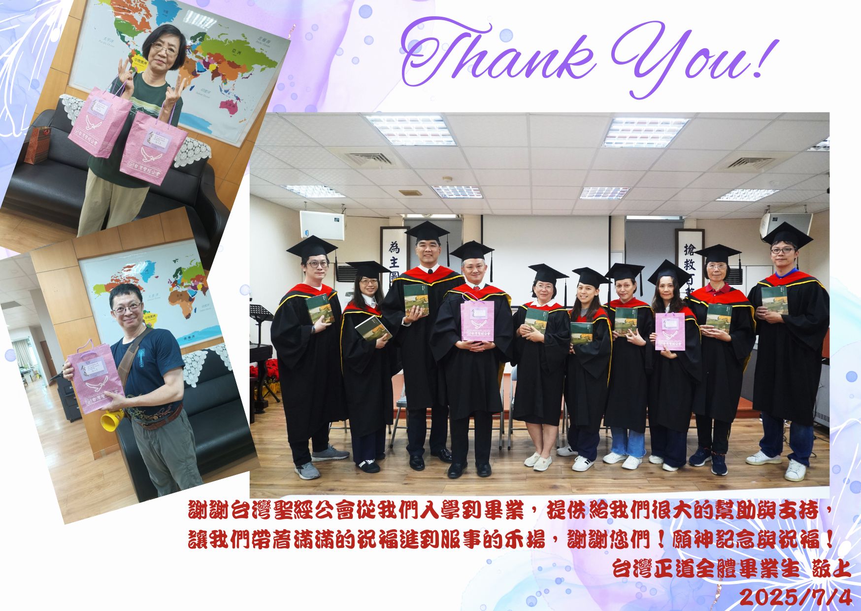 謝謝台灣聖經公會對畢業生的支持與祝福,願您們一切的服事,都在上帝的手中,更加確實與美好。