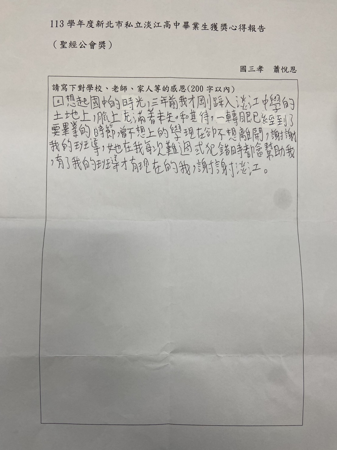 誠摯感謝聖經公會所贈送的三本研讀精選,學生在求學過程中傾向依賴網路爬文與圖書館,能擁有屬於自己的研讀材料,不僅多元了學生的視野,也更有持續性深挖經文中的內涵。