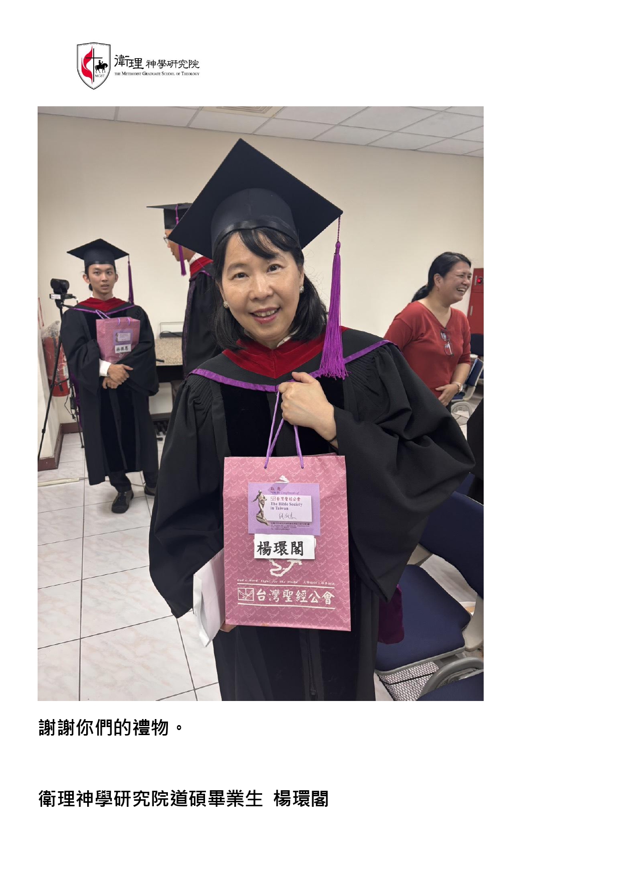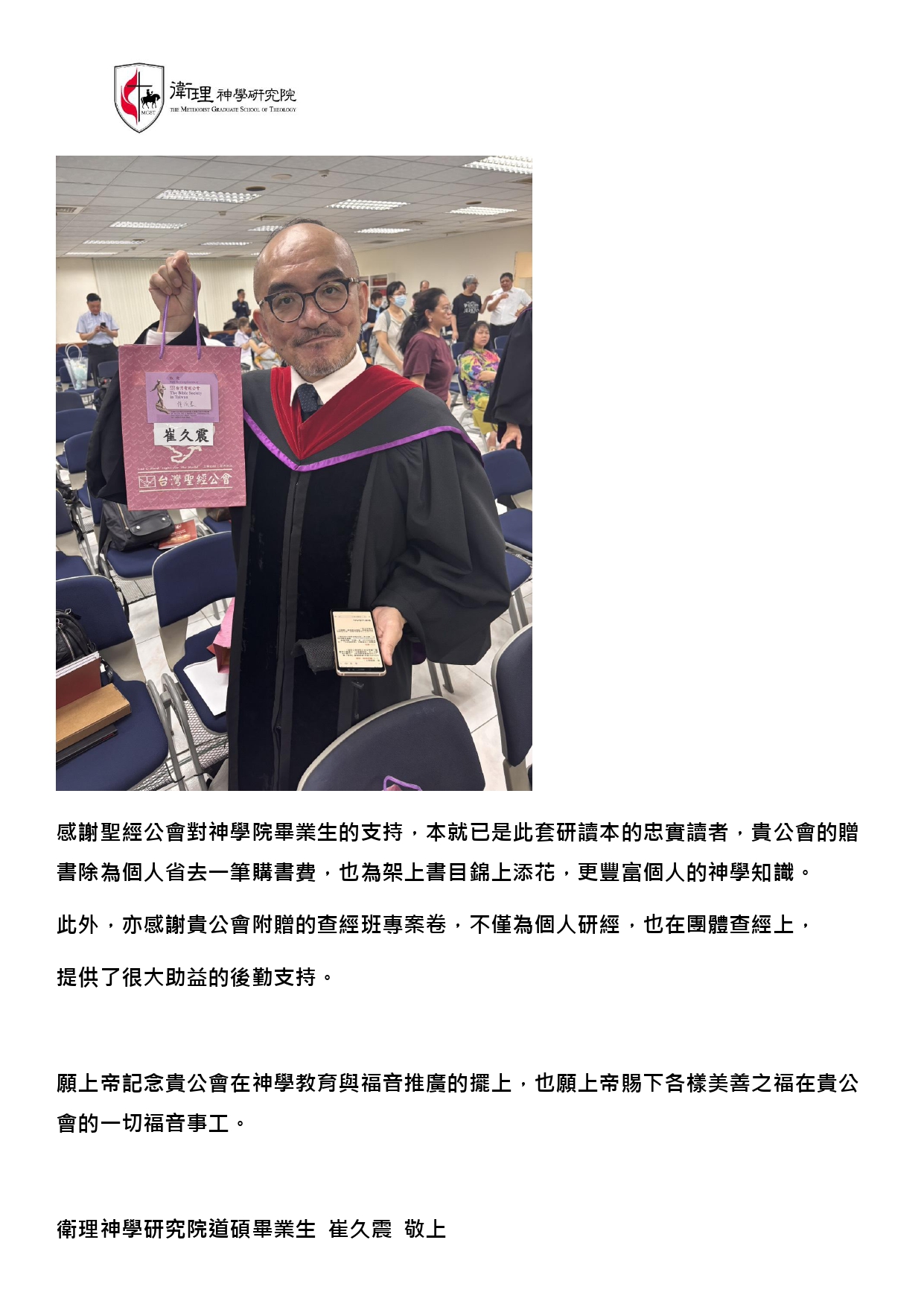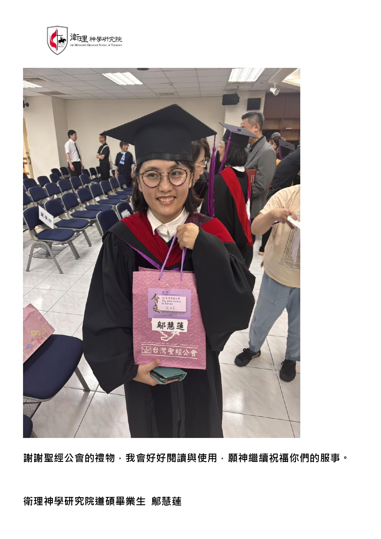 我們收到神學院畢業生發送來的感謝回應,這份喜樂,歸給坐在榮耀寶座上的唯一真神。